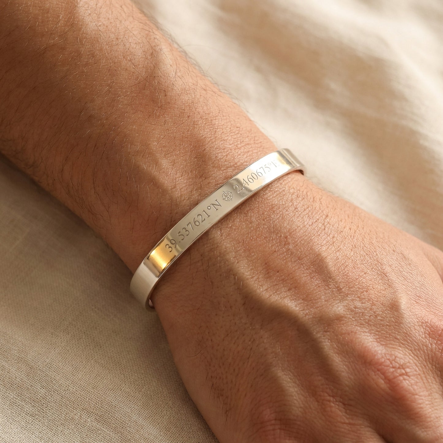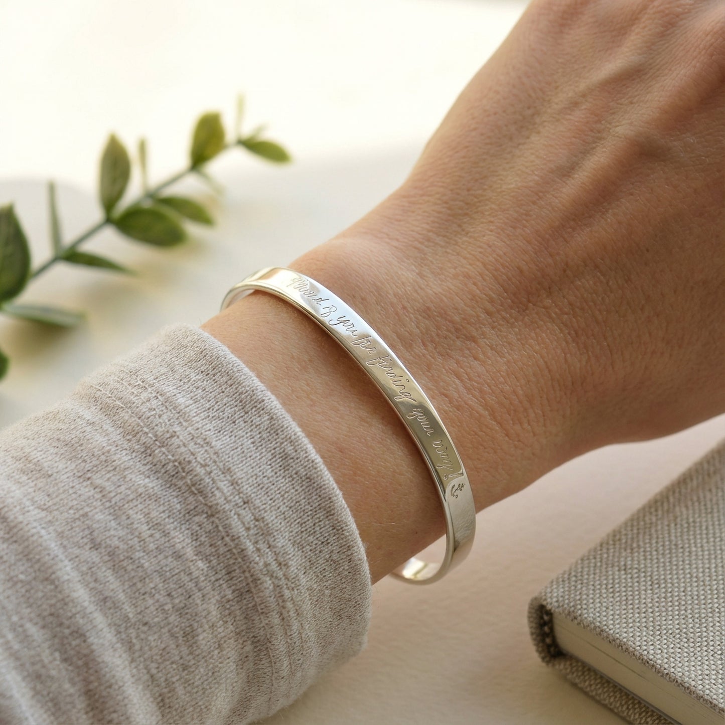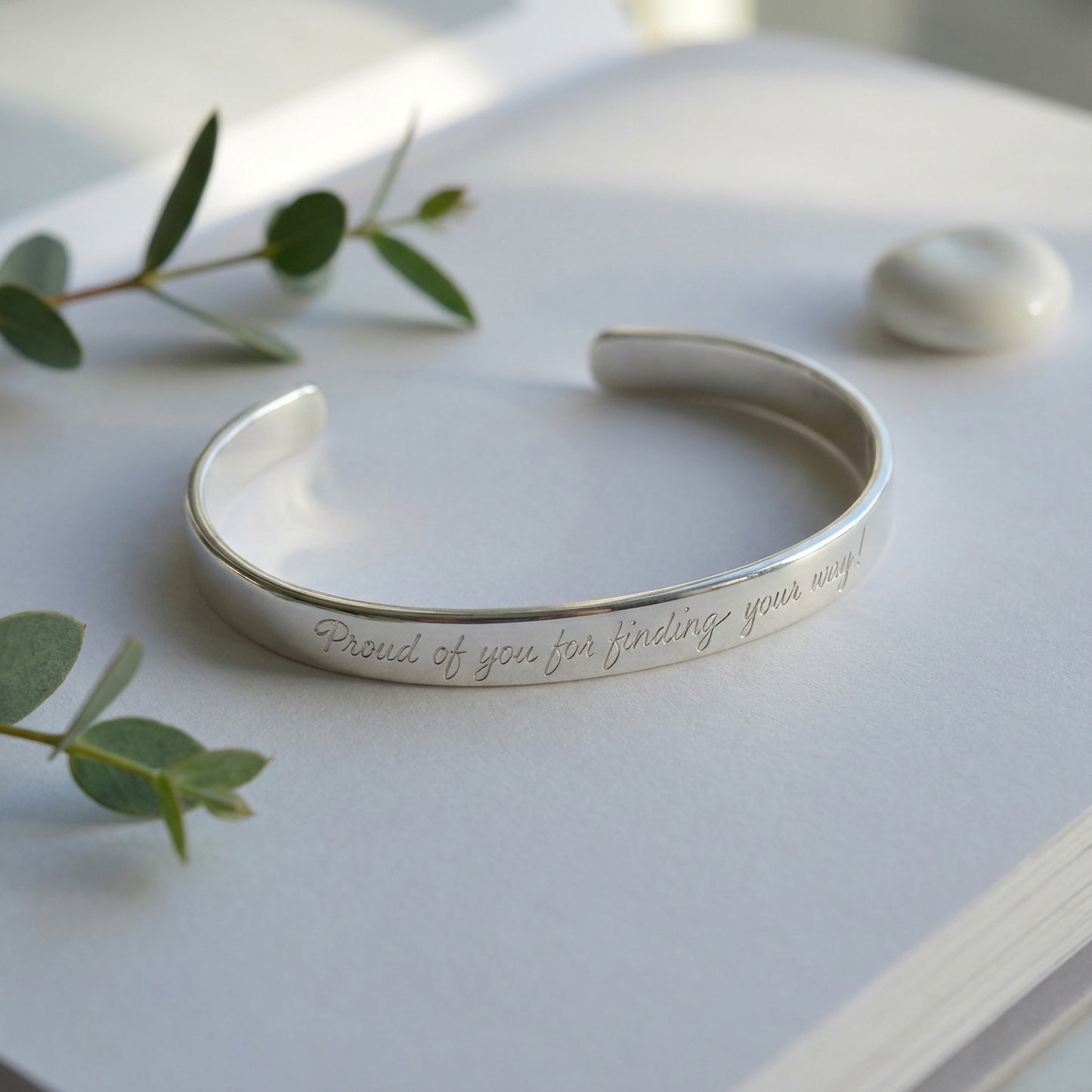 Celebrate a milestone with this sleek, hand-crafted sterling silver bangle — 6.3 mm wide, elegantly laser-engraved with your choice of quote, coordinates or handwriting. Whether inside or out, the message will shine for years. A meaningful graduation keepsake or a timeless gift for someone special.