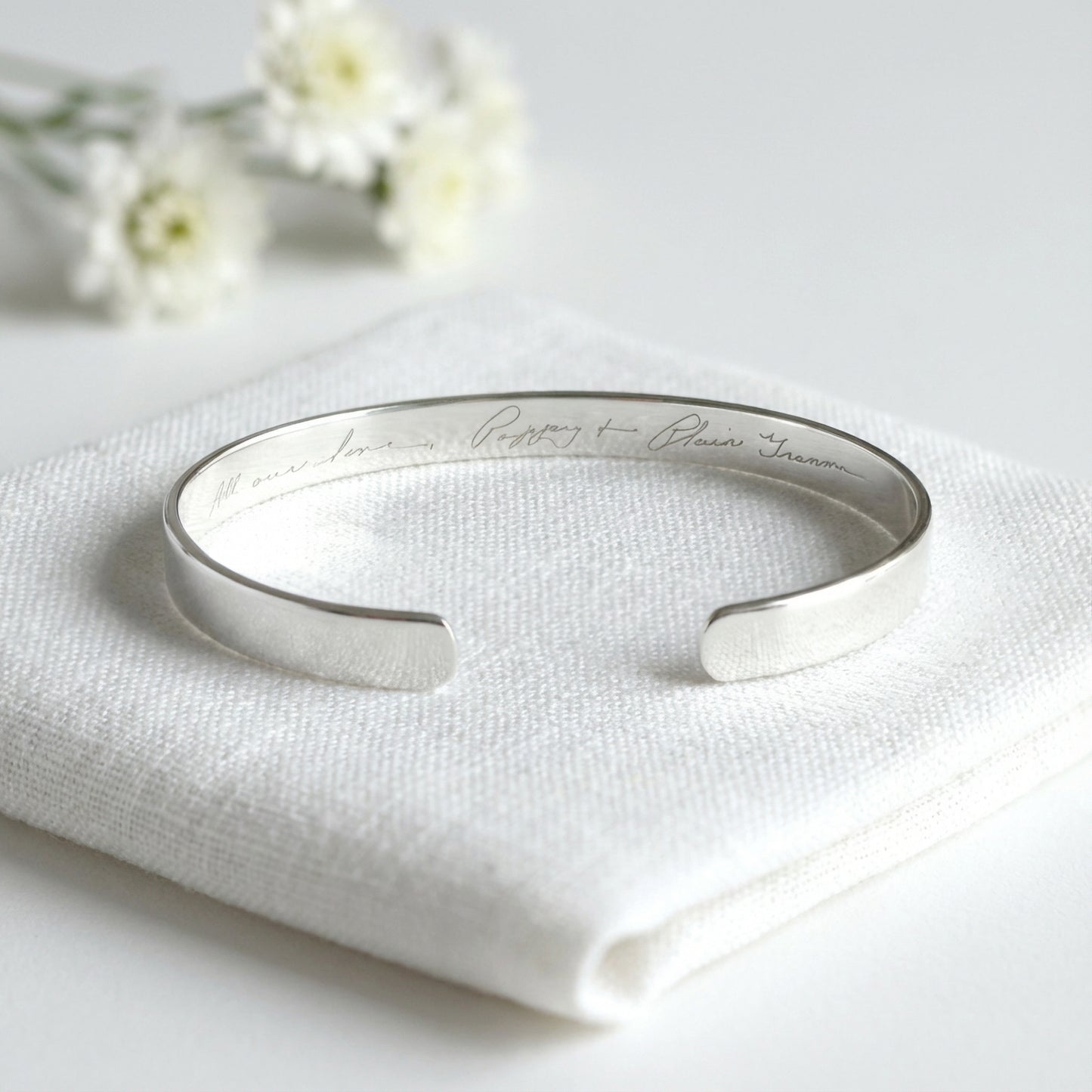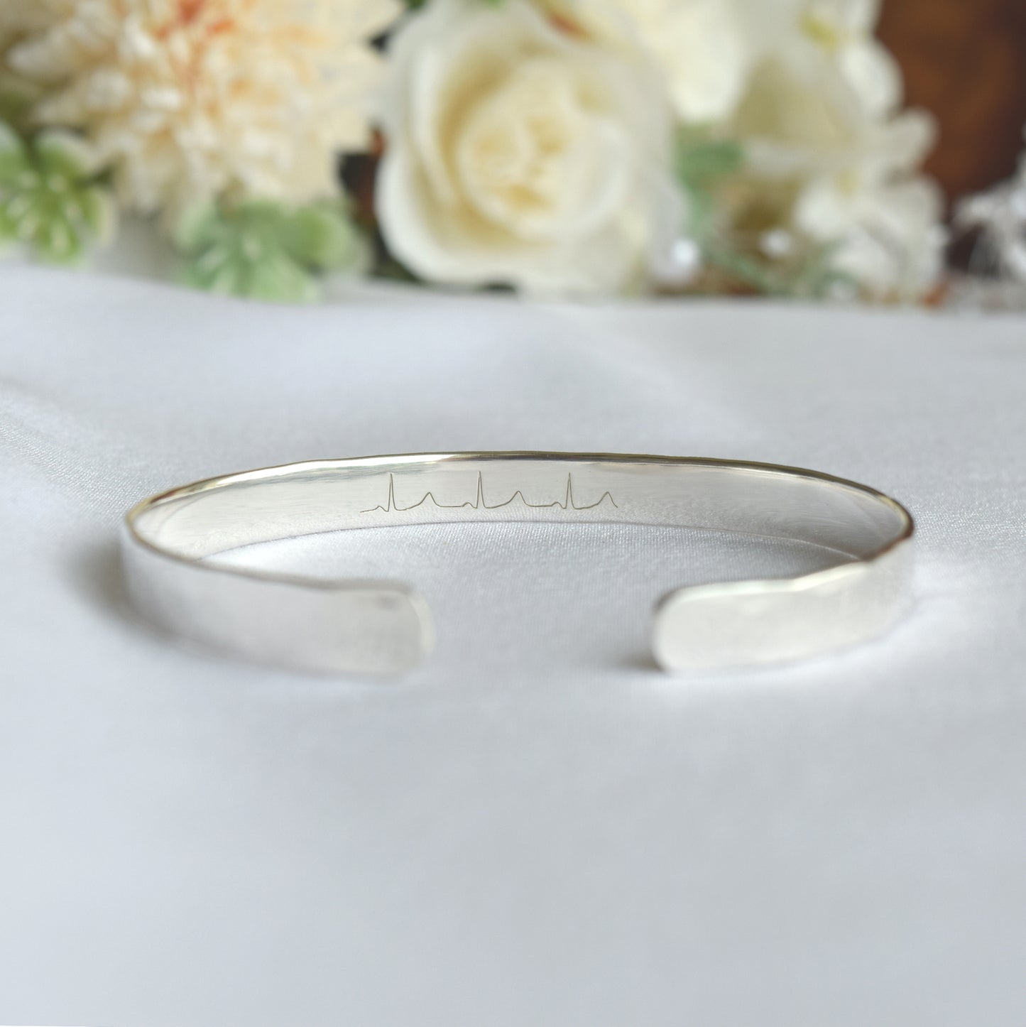 This personalized Sterling Silver 925 cuff bracelet features a wider, bolder design while remaining fully adjustable and comfortable to wear. Created as a meaningful everyday piece for women or men, it can be engraved with your favorite affirmation, motivational quote, name, date, or symbol to keep close every day.