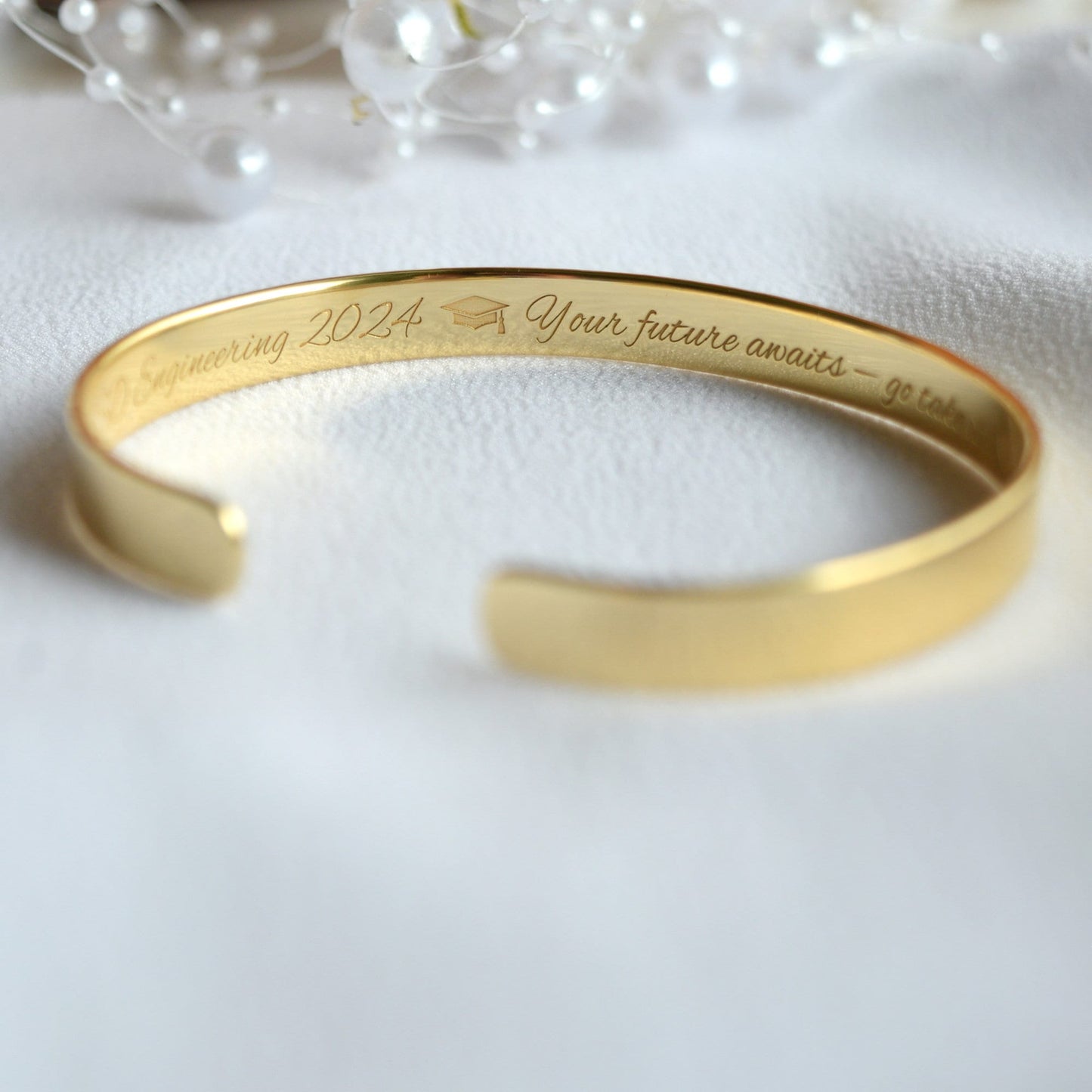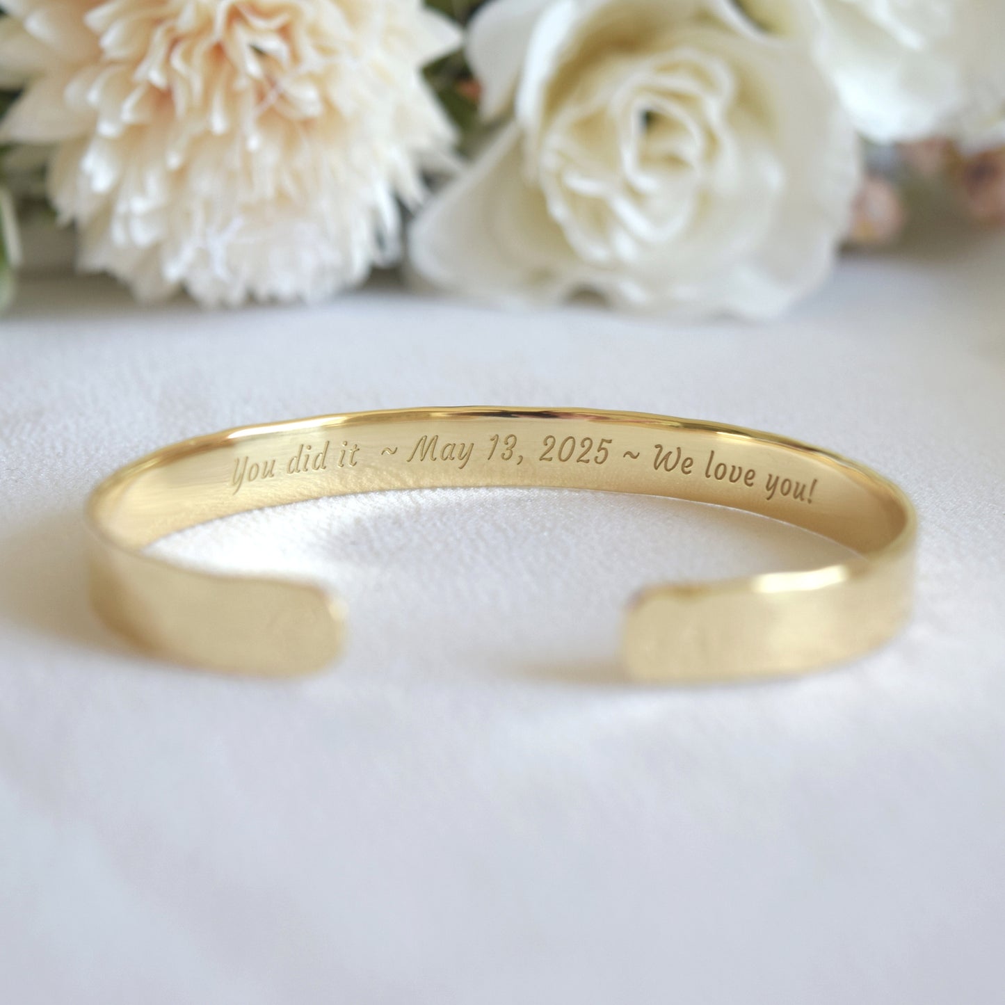 22K Gold Plated Cuff Bracelet Engraved with Your Text, Graduation Gift, 1/4'' Wide