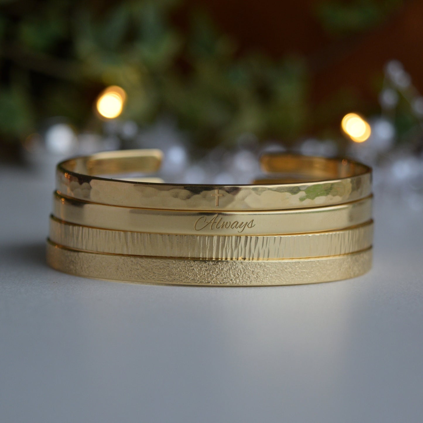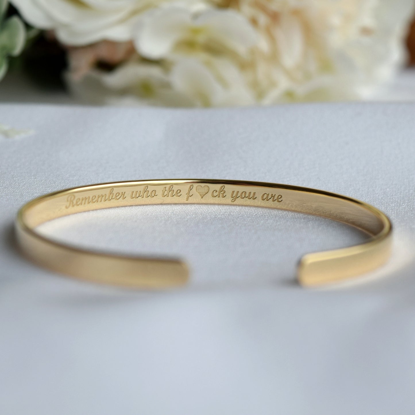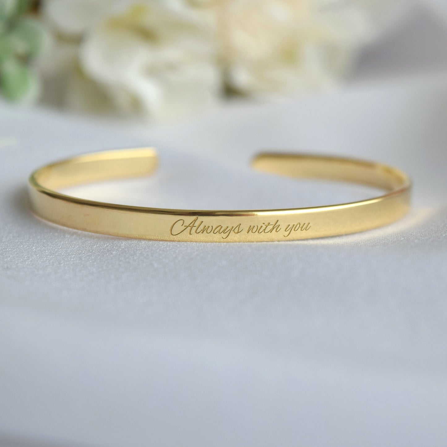 22K Gold Plated Engraved Bracelet: Custom Cuff with Message for Soulmate