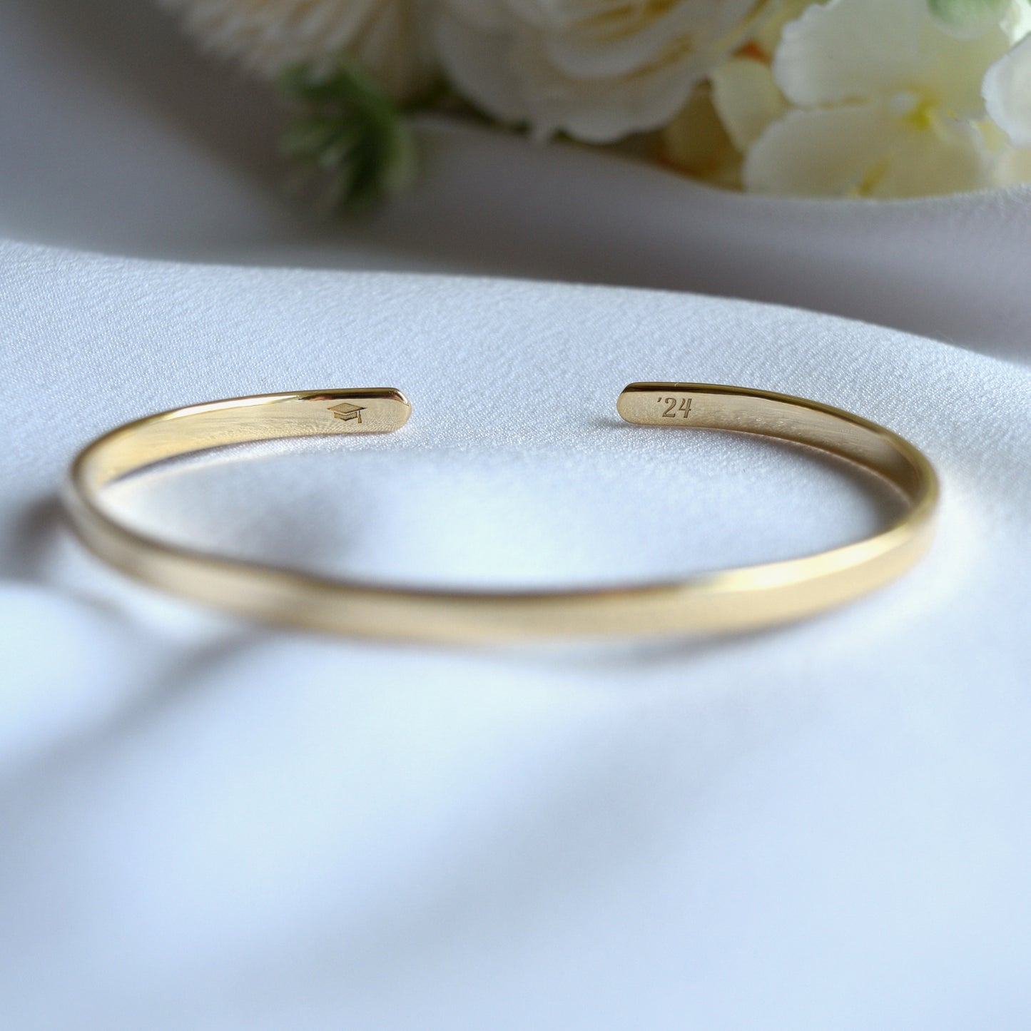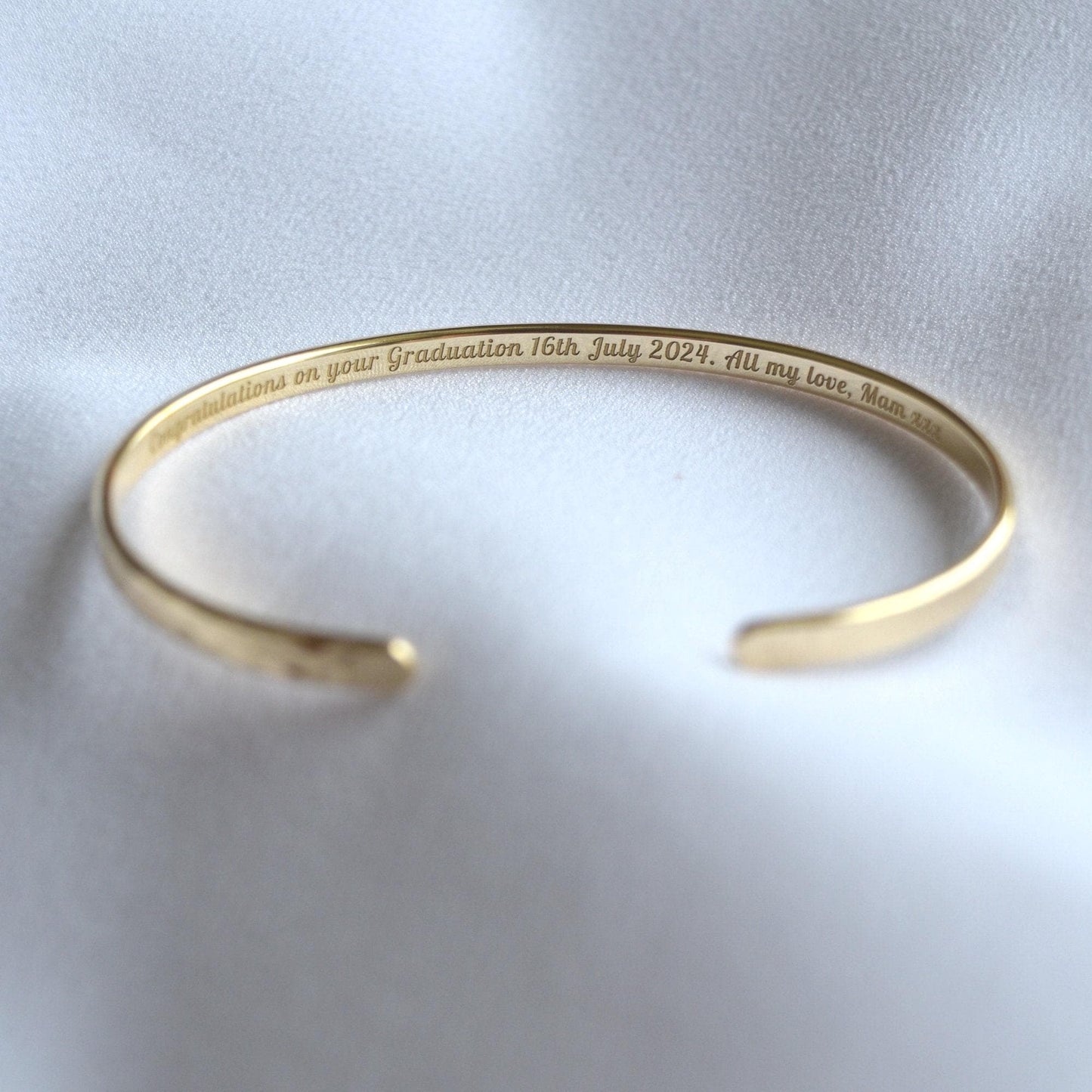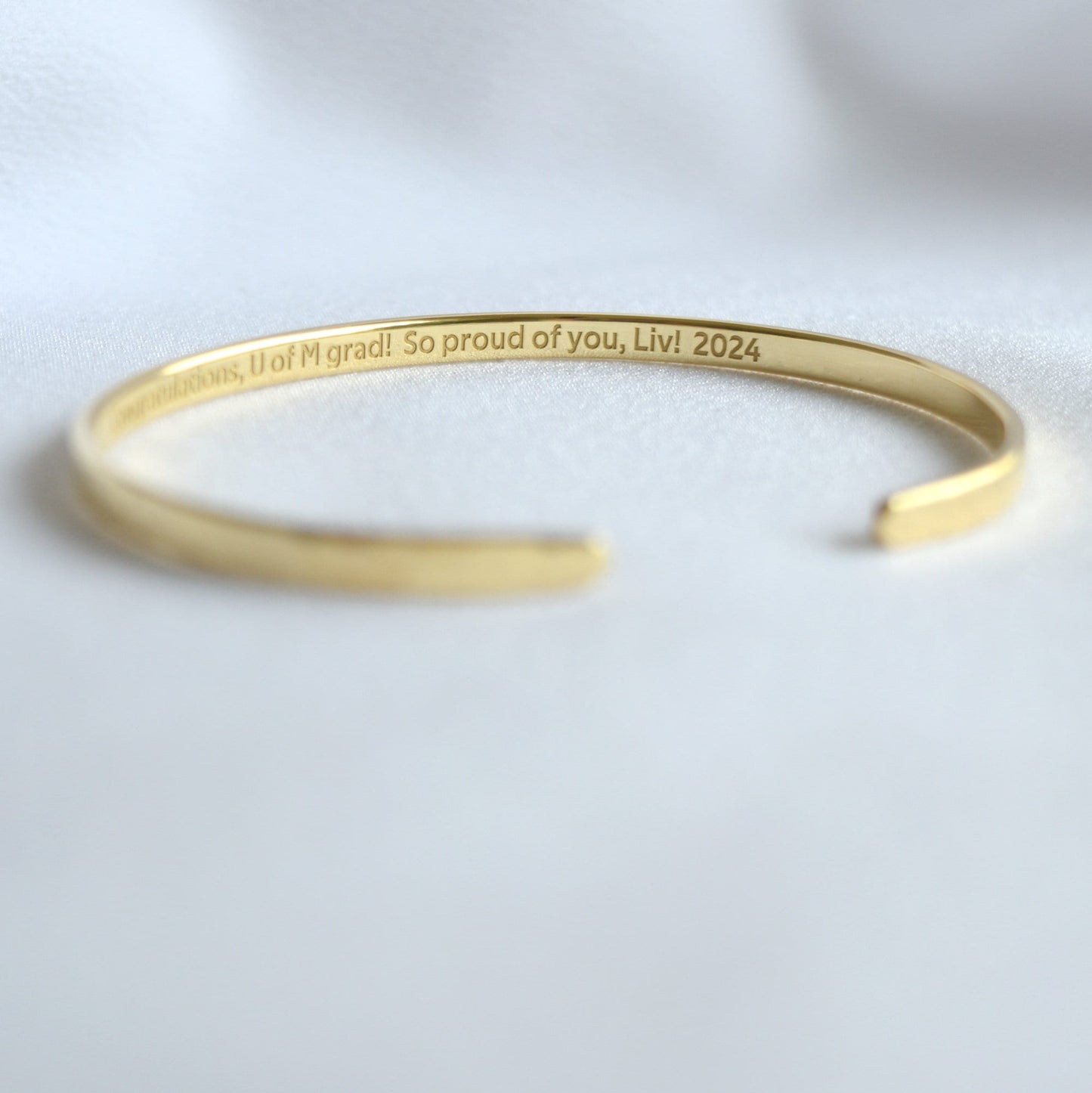 22K Gold Plated Engraved Bracelet, Slim Bangle, Graduation Gift