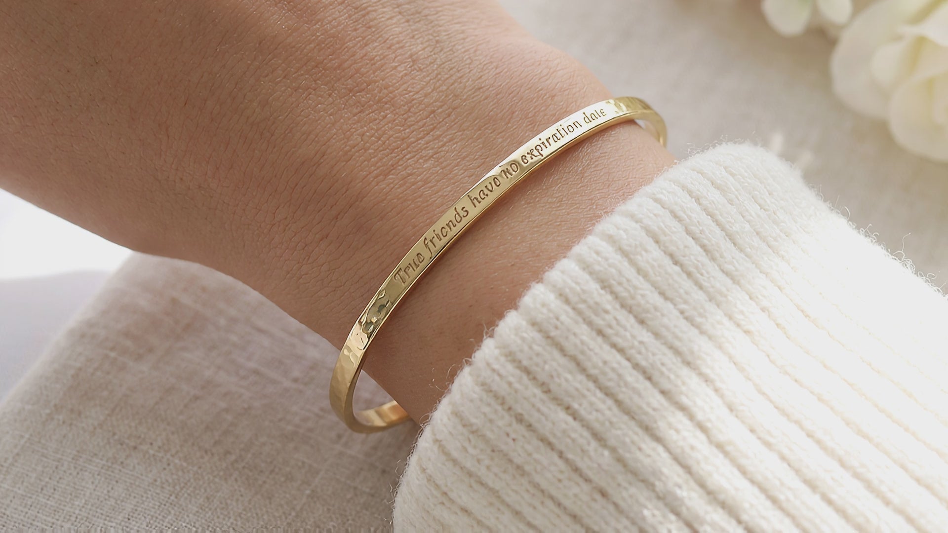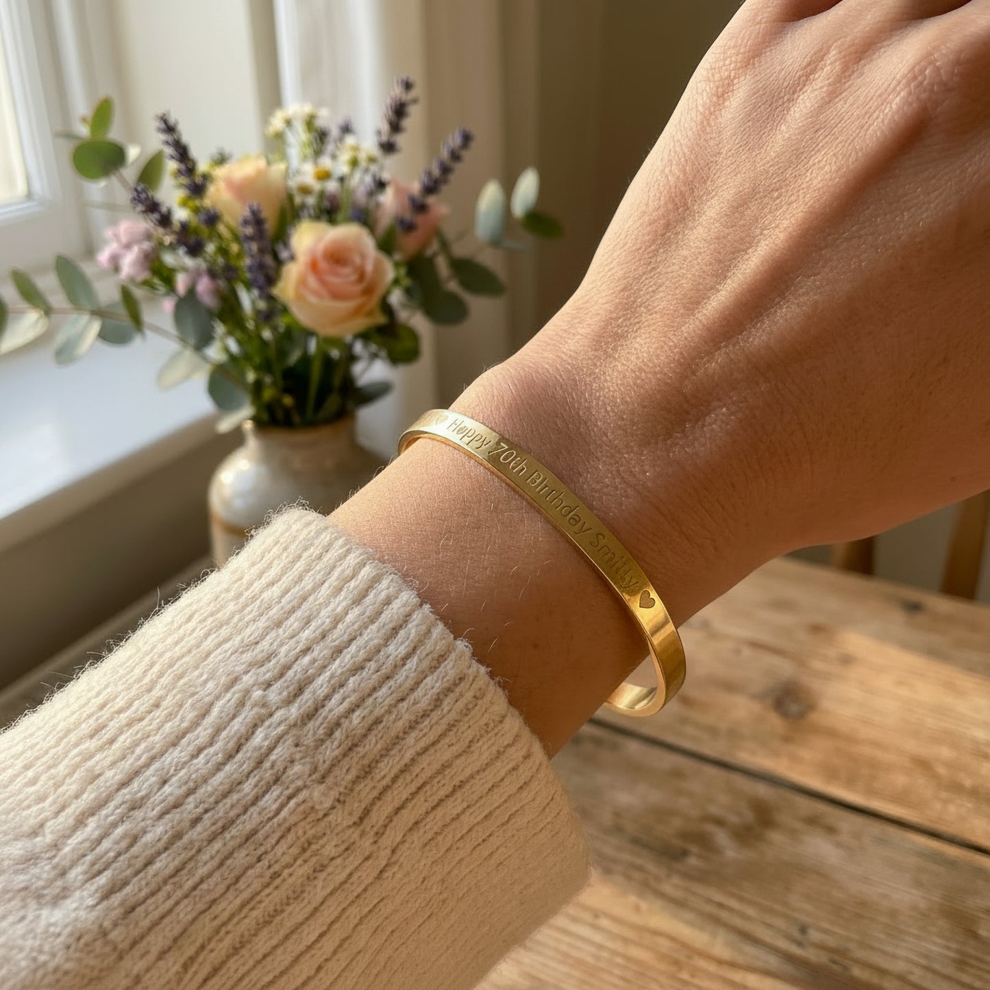 22K Gold-Plated Engraved Cuff Bracelet: Personalized Bracket with Hidden Message