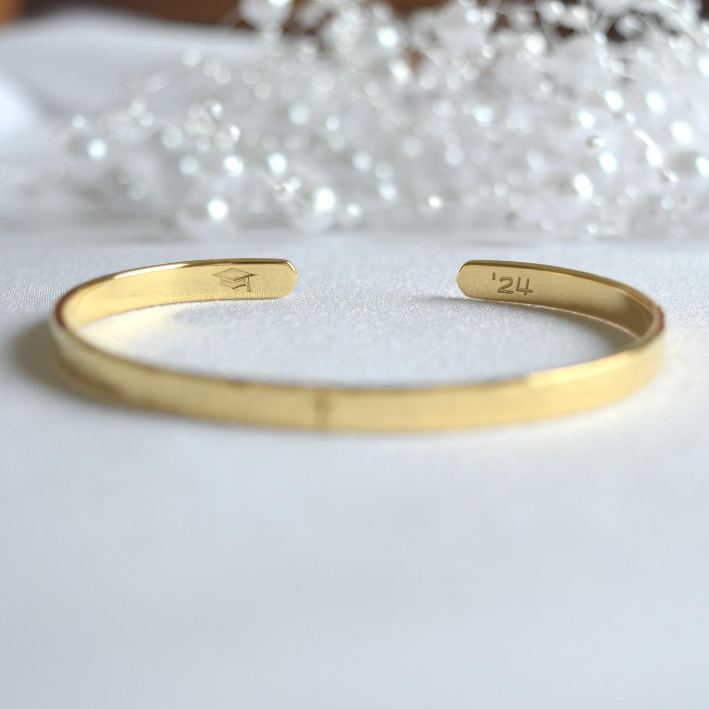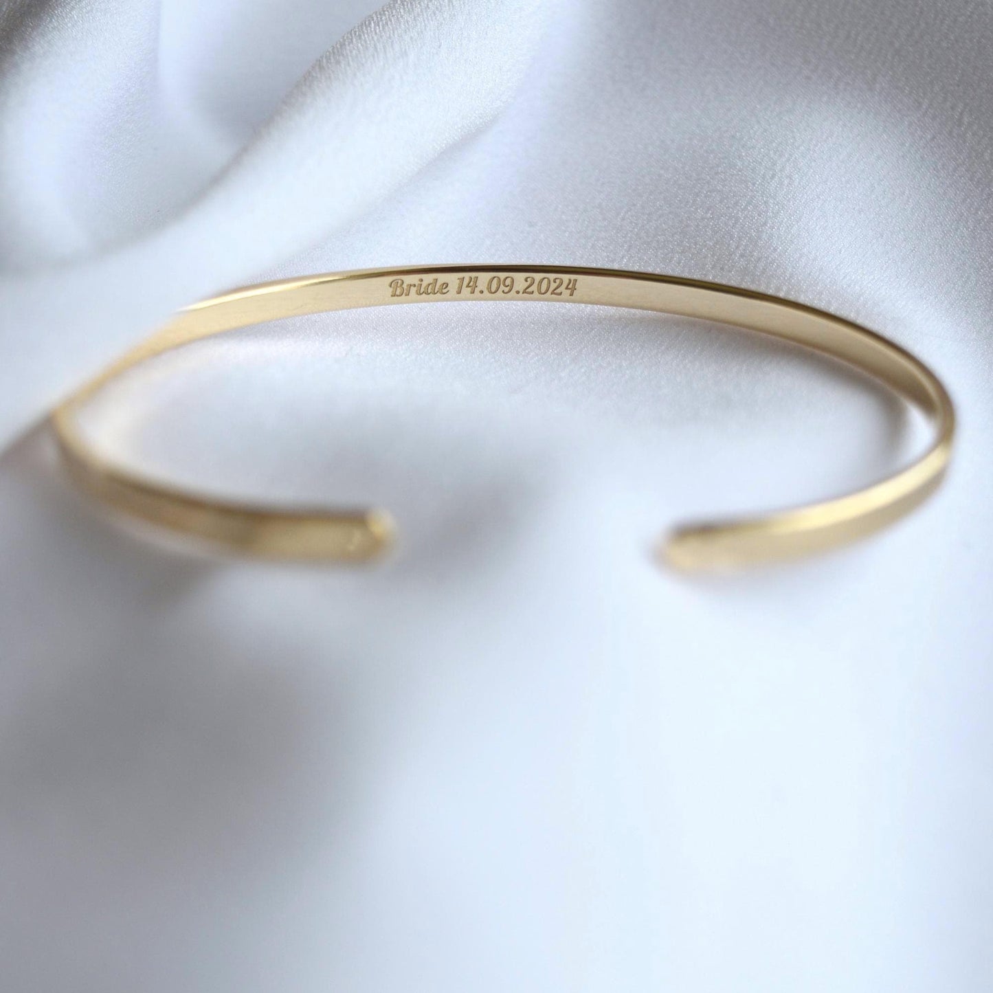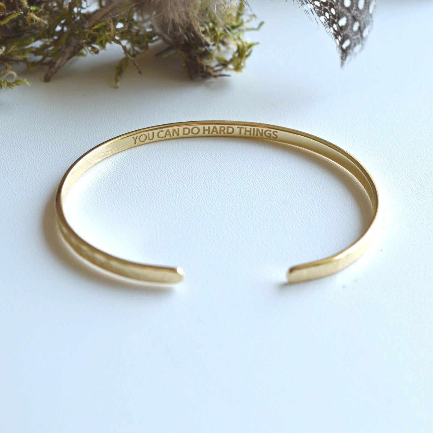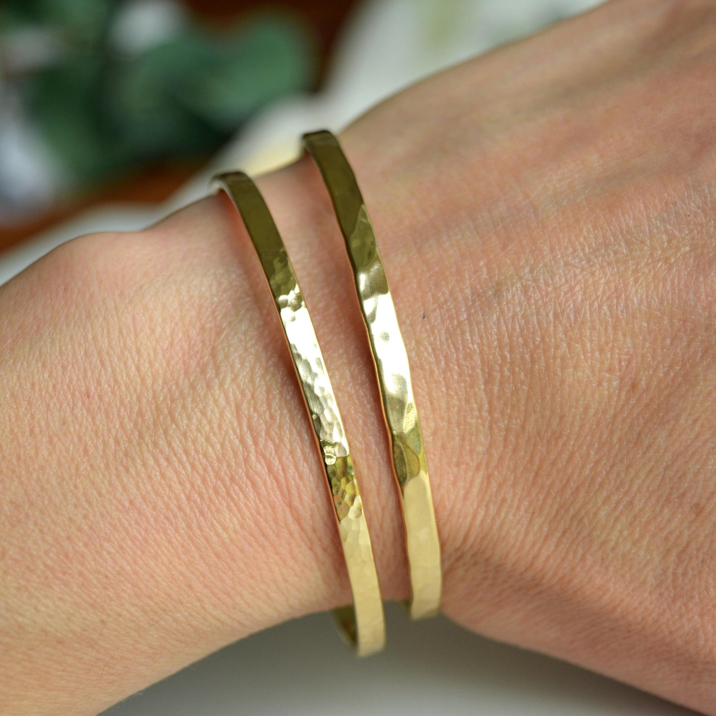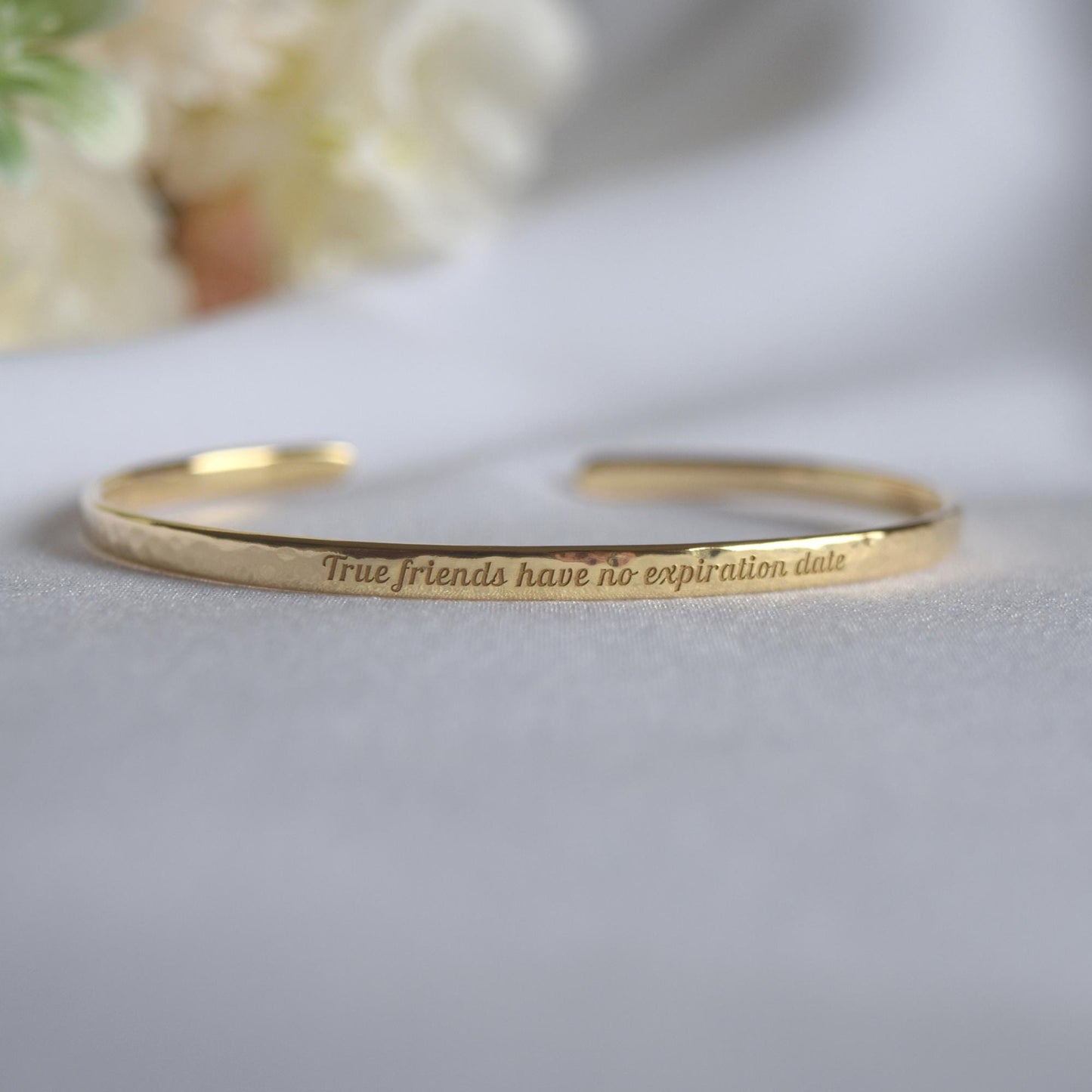 22K Gold Plated Hammered Bracelet: Personalized Engraved Cuff, Narrow, 3mm