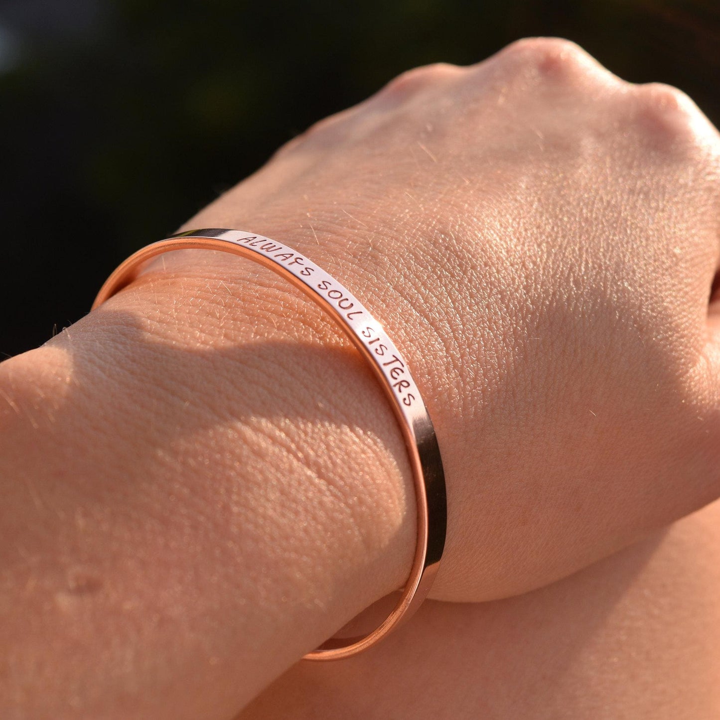 Custom Copper Cuff Bracelet: Engraved Text for Soul Sister, BFF, Couples