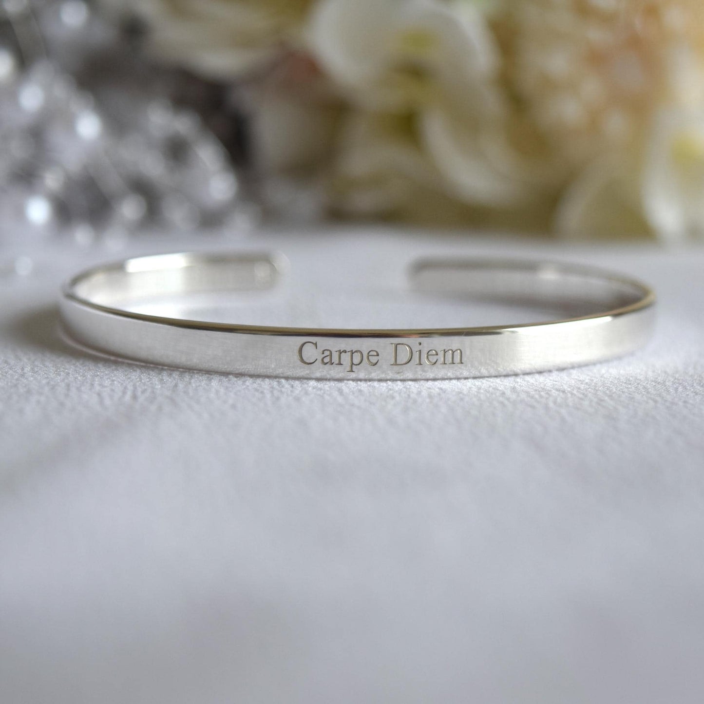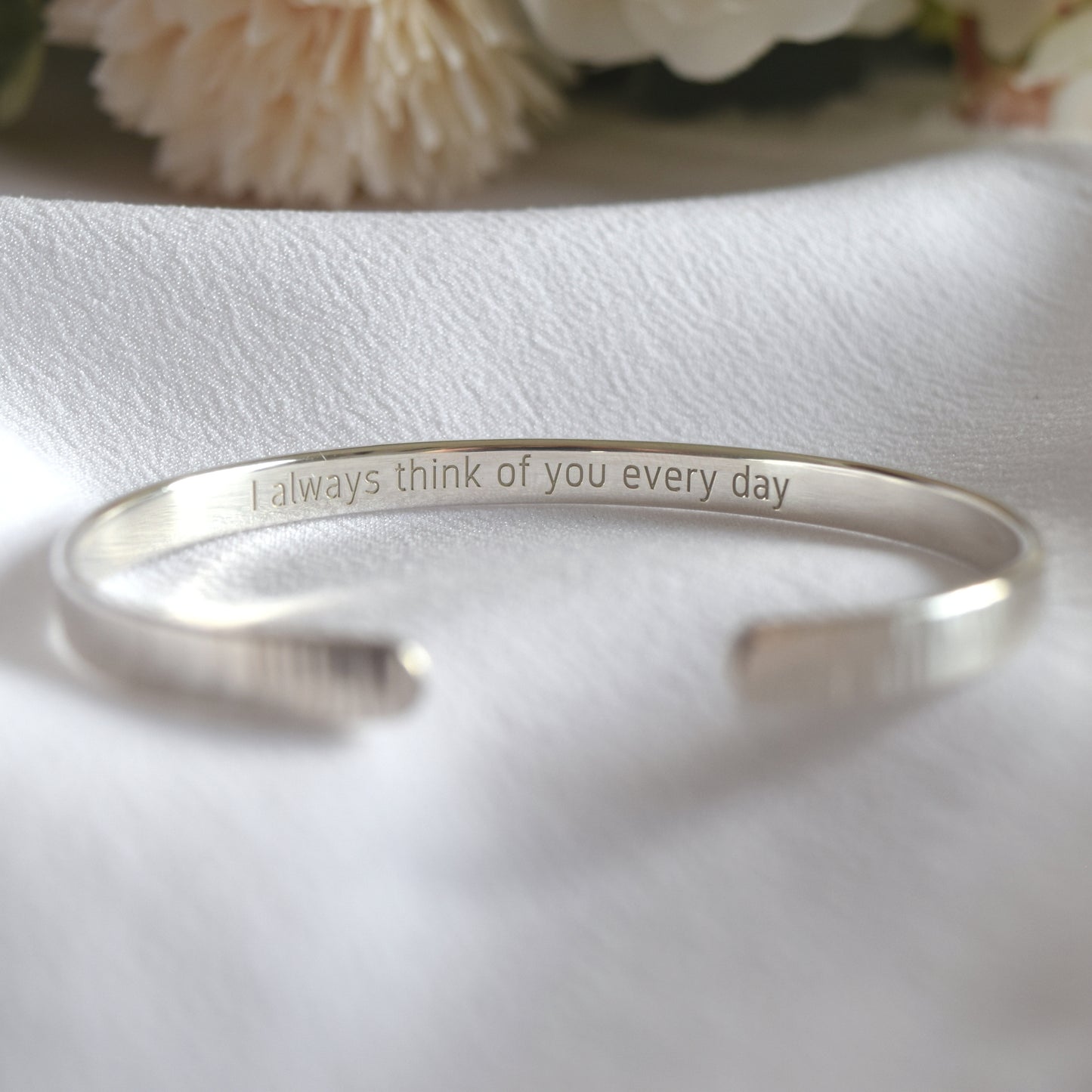 Custom Engraved Bracelet, Sterling Silver 925 Cuff, Happy Birthday