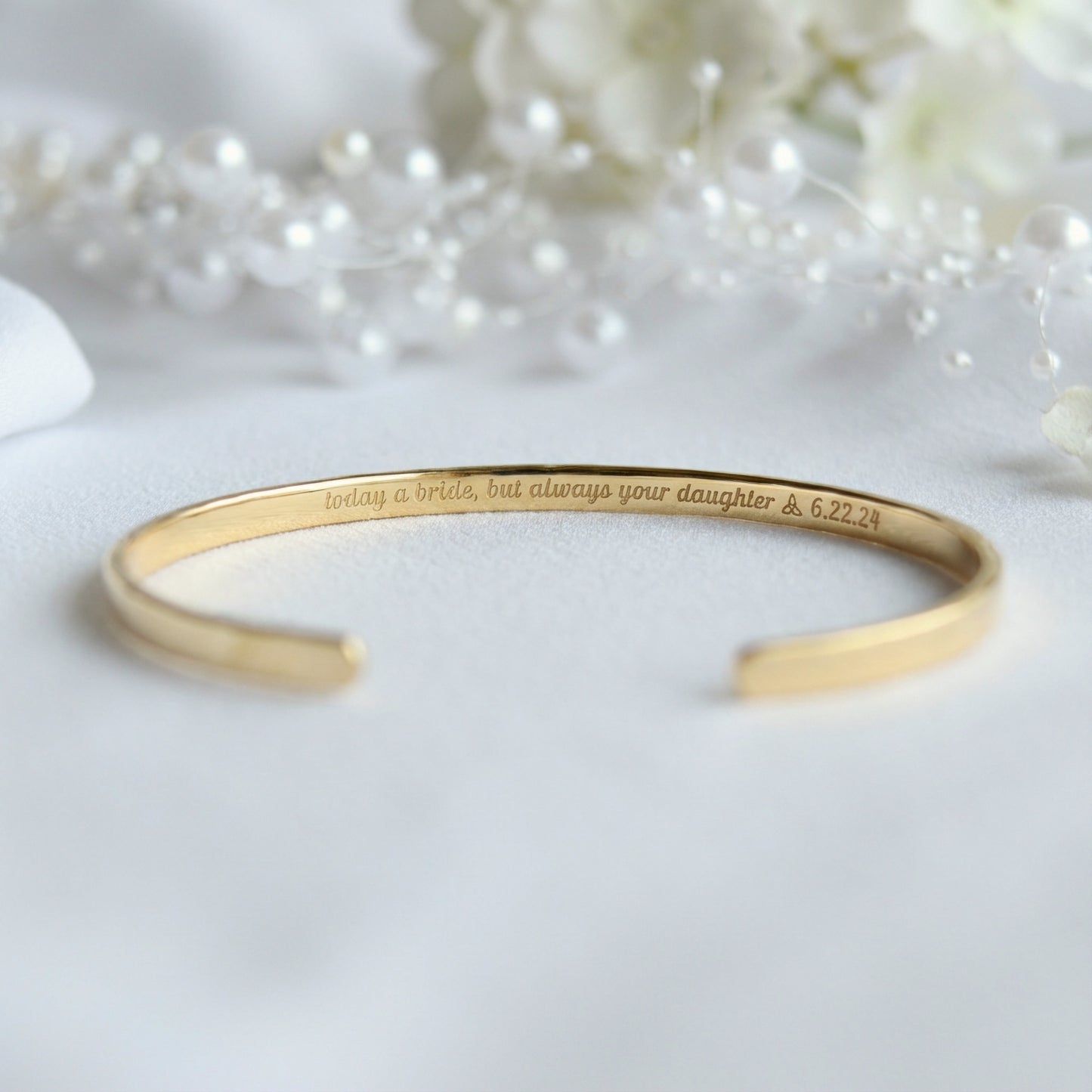 Whether you choose a loving quote, a date, initials, coordinates, or a short message from a mother-in-law, this bracelet becomes a lasting reminder of love, connection, and belonging.