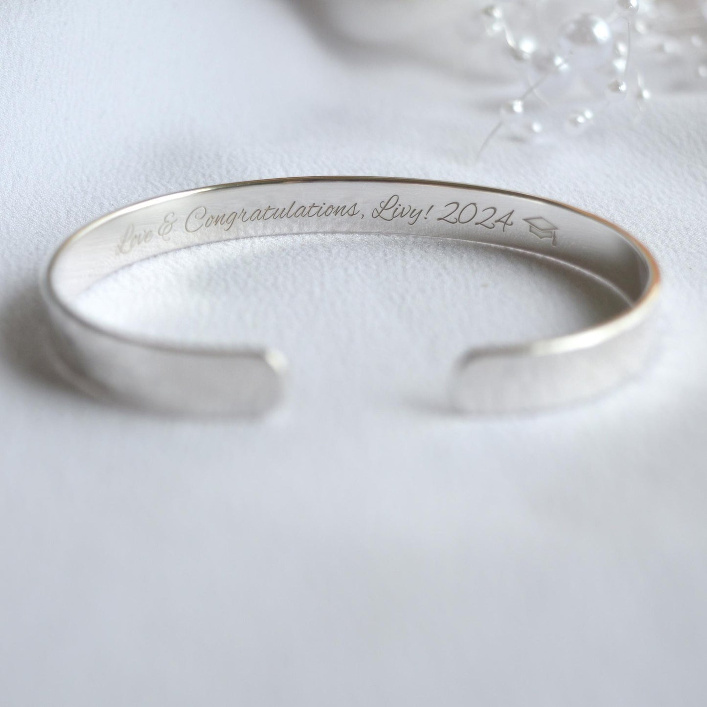 Engraved Sterling Silver Bangle Bracelet, Graduation Gift, 1/4 wide
