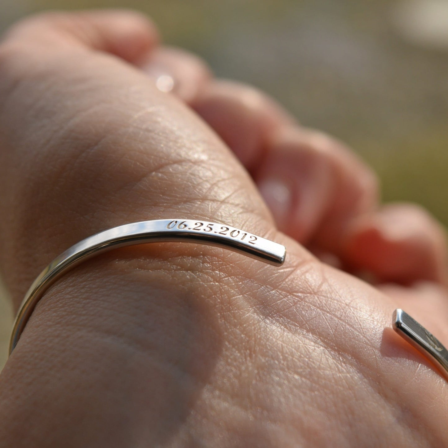 Engraved Sterling Silver Cuff Bracelet: Personalized Message, Keepsake Gift, 3mm Wide