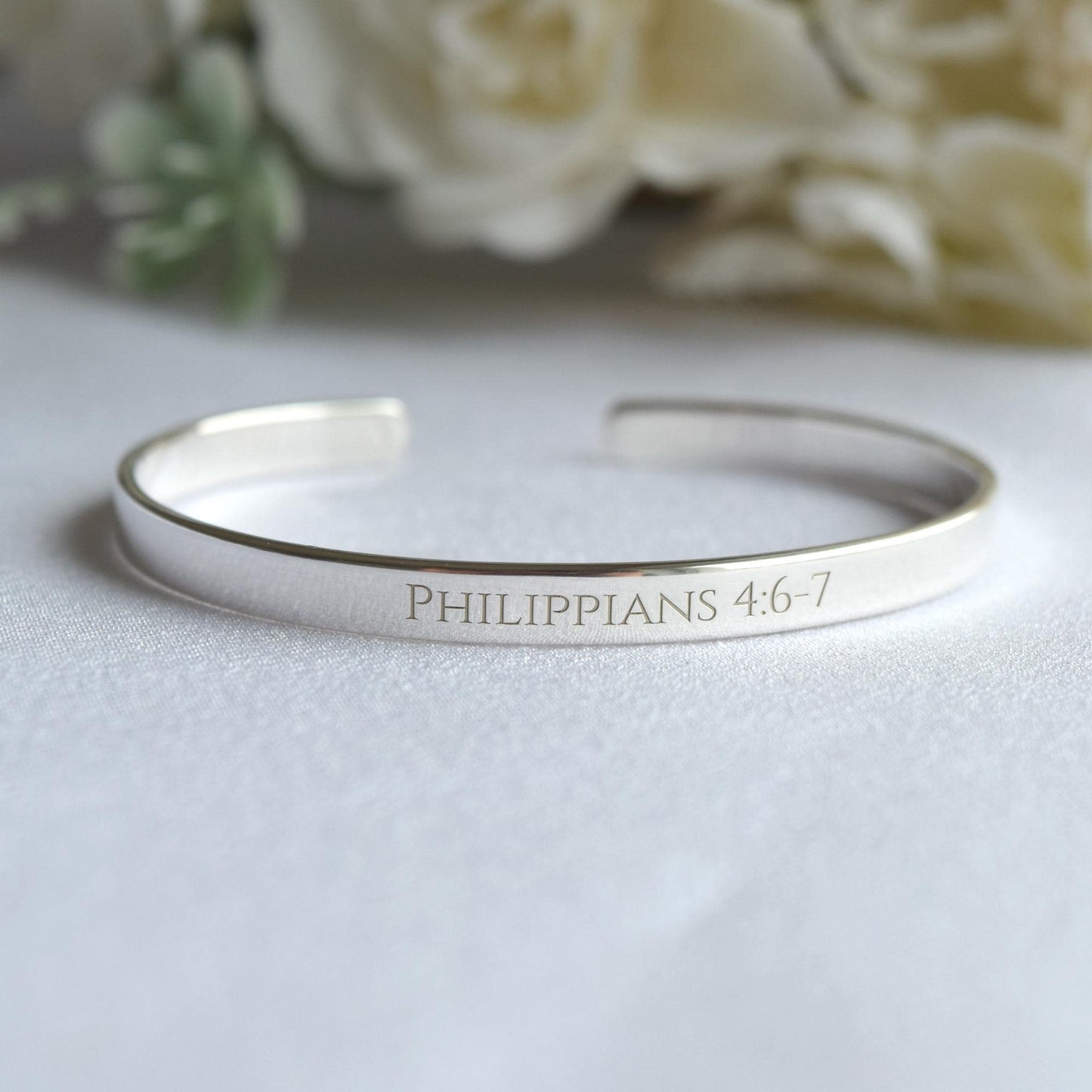 Religious, Christian, Sterling Silver 925 Custom Engraved Bracelet, Faith, Hope, God