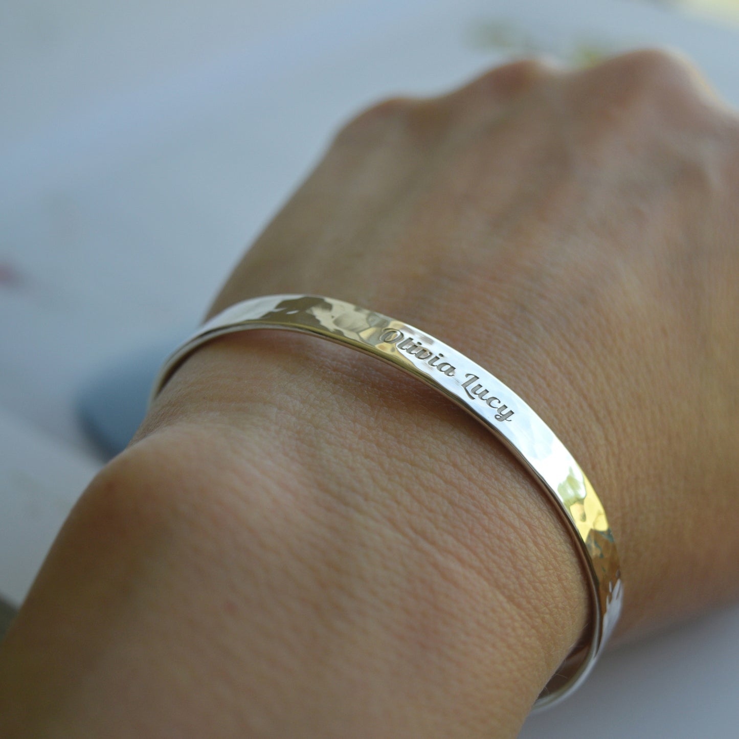 Sterling Silver Cuff Bracelet: Personalized Engraving, Solid Jewelry, 1/4 Inch Wide